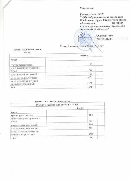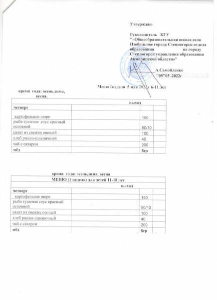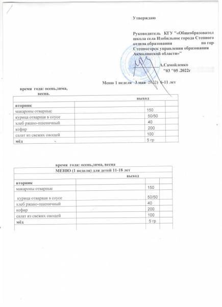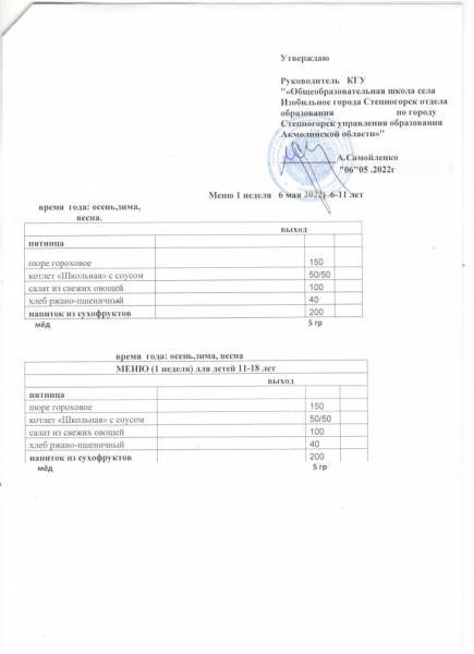 меню 1 неделя май м-ц
